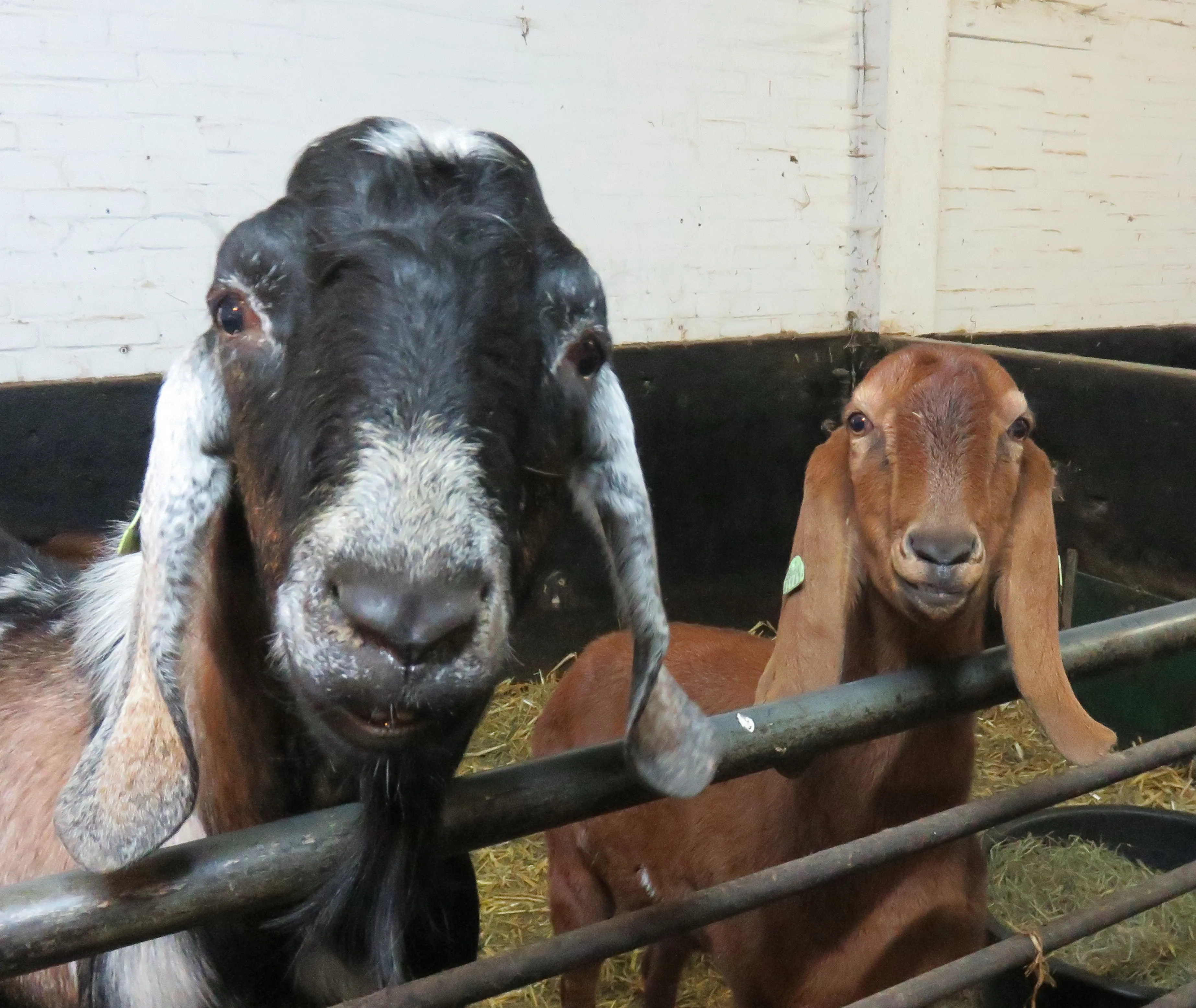 Nubische geiten heten officieel Anglo-Nubische geiten, maar ze zijn beter bekend onder hun kortere naam. Het ras is in de tweede helft van de negentiende eeuw ontstaan in Engeland, door de kruising van voornamelijk Afrikaanse hangoorgeiten uit onder meer Egypte met Engelse landgeiten. In 1982 zijn de eerste Nubische geiten naar Nederland gehaald. De Nubische geit is het grootste geitenras ter wereld. De geiten kunnen tot honderd kilo wegen, de bokken tot zelfs 150 kilo. Ze hebben een zacht en aanhankelijk karakter en kenmerken zich door hun statige houding en markante uiterlijk. In het oog springen natuurlijk vooral de hangoren, die dertig centimeter lang kunnen worden en tot voorbij de mond reiken. De melkproductie van Nubische geiten blijft iets achter die van andere geitenrassen, maar de melk heeft gemiddeld wel een hoger vet- en eiwitgehalte. We onderzoeken daarom de mogelijkheden om van de melk zelf geitenkwak en geitenkaas te maken. De melk is daar namelijk zeer geschikt voor. We houden u op de hoogte.