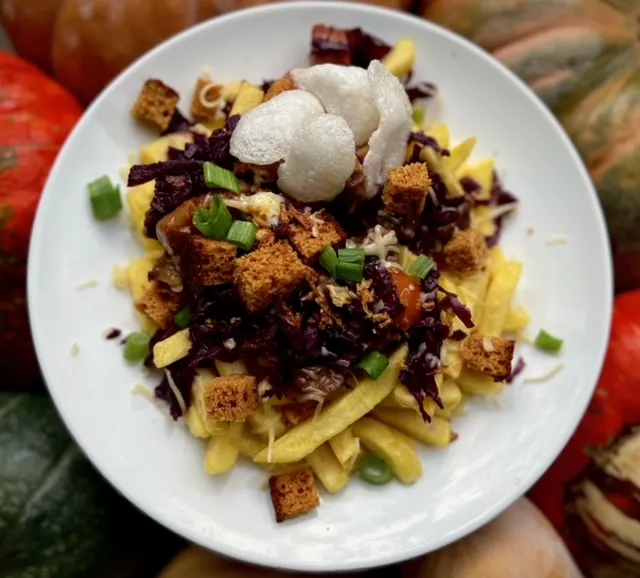 Deze week viert Boerderij Daalhoeve feest. De stichting die de boerderij exploiteert, bestaat namelijk 10 jaar. Dat vieren wij op verschillende manieren (zie onze Agenda), onder meer met een Feestmenu in de Koojstal. Dat is Loaded Fries met onder meer Belgische stoof, rode kool, peperkoek en gebakken uitjes. Een speciaal gerecht met tien ingrediënten voor de prijs van € 10,-. Alleen deze week in de Koojstal. LEKKER!!!